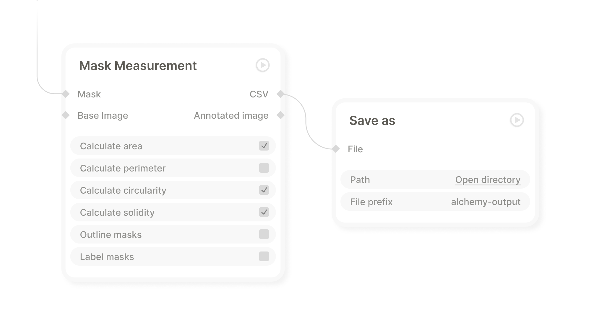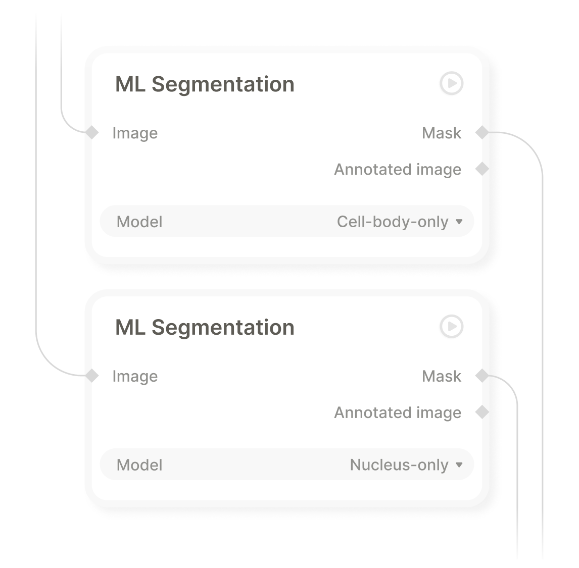 On top of our library of verified nodes, our AI-powered code editor lets you create custom building blocks from scratch. Working with unusual staining, non-standard imaging, or a niche organism? Describe what you need, and Alchemy generates a new node tailored to your data.